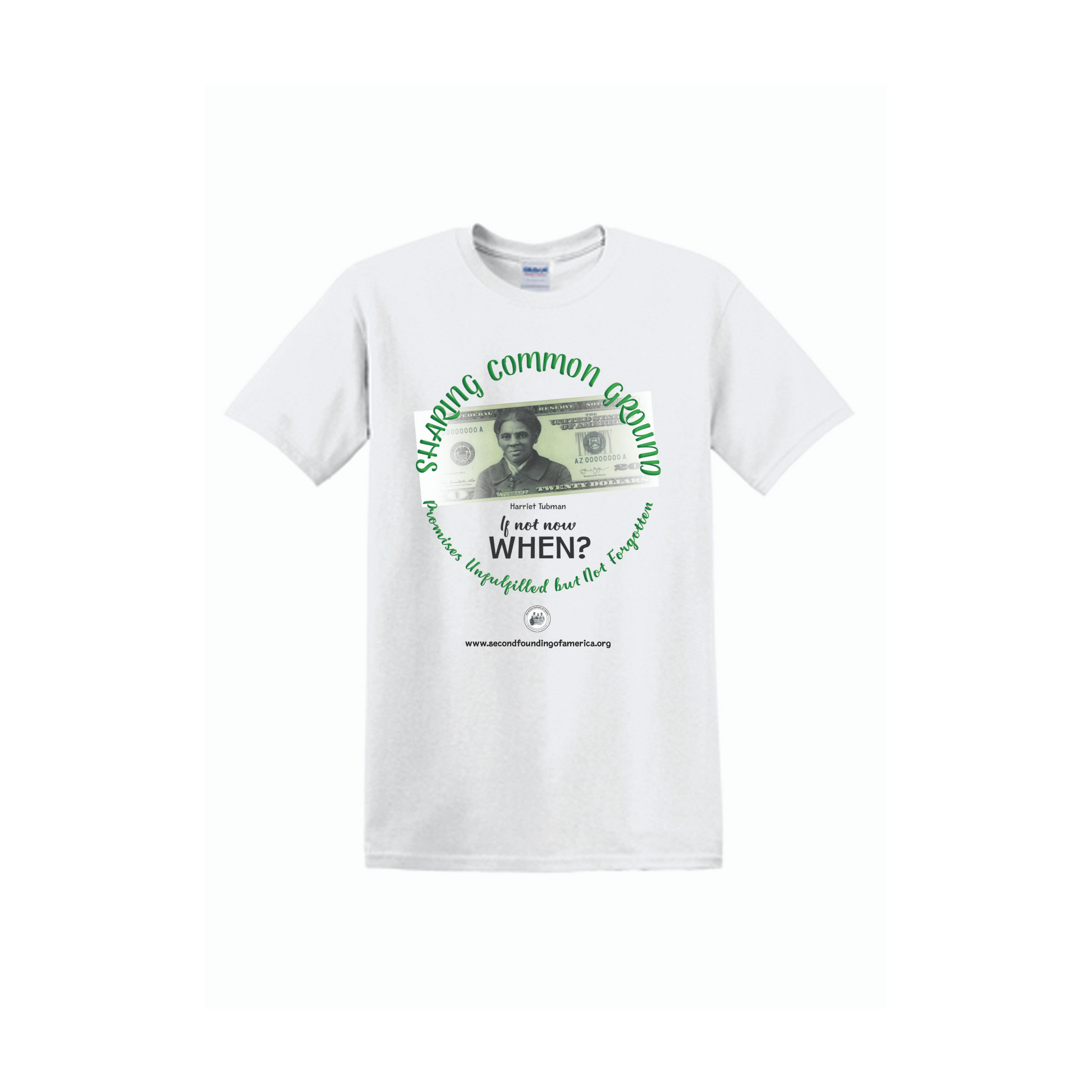 Harriet Tubman – An unsung hero of the Civil War was recognized by the Obama administration that ordered her portrait be placed on the $20 bill. The Trump Administration did not follow through. Sharing Common Ground organized a petition to campaign to encourage the Biden administration to immediately complete the design and put the Harriet Tubman $20 into circulation. Sign the petition and wear the shirt. SIGN OUR PETITION HERE!